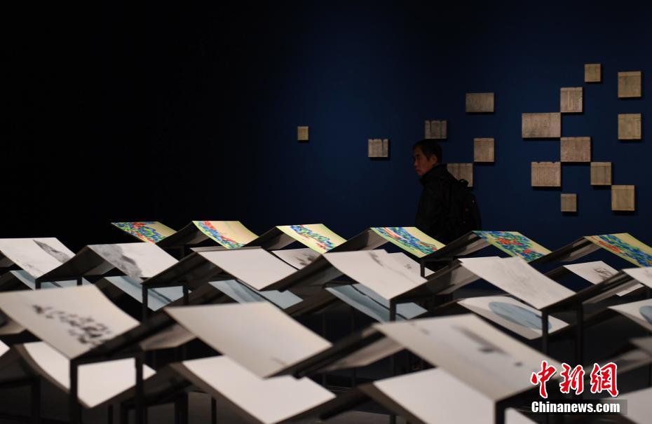 3月7日,《西湖志》刻本墻吸引當(dāng)?shù)厥忻耨v足。近日,中國水印版畫大展在浙江杭州展出,各類水印版畫作品集中亮相,呈現(xiàn)千年民族藝術(shù)之美,展現(xiàn)“東方智慧”。中新社記者王剛 攝
