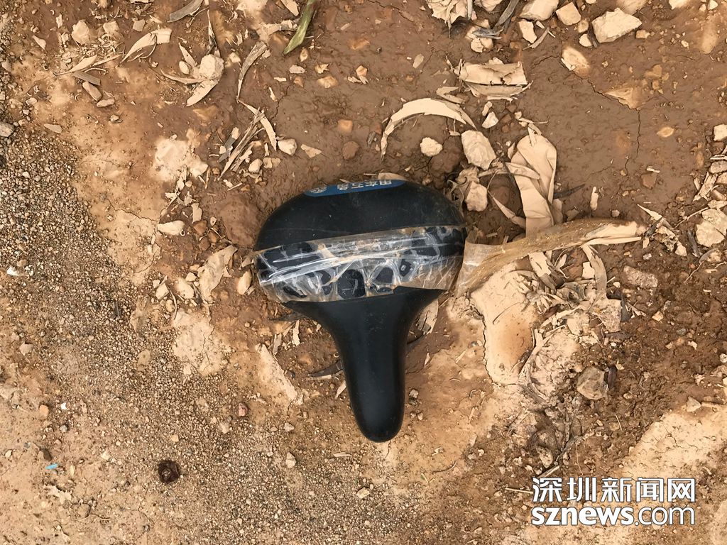 圖為小藍(lán)單車存放處有一個(gè)座椅掉落在地上