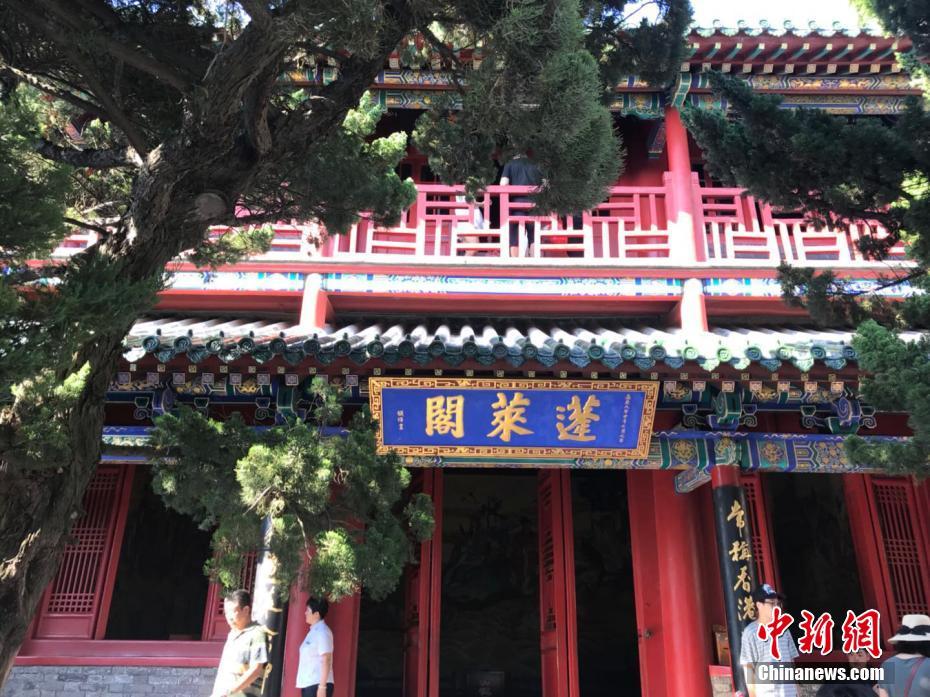7月16日,記者探訪了山東省蓬萊市蓬萊閣。蓬萊閣是中國古代四大名樓之一,素有“人間仙境”之美譽。傳說曾有神仙出沒于此,秦始皇曾命人在此尋求“長生不老”之藥。蓬萊閣建于丹崖極頂,建筑凌空,海霧氤氳,居身其中,恍如身處仙境?!鞍讼蛇^?!钡膫髡f亦源于此地。在蓬萊閣主閣二層,登臨遠眺,蓬萊盡收眼底。中新網(wǎng)記者梁美辰 攝