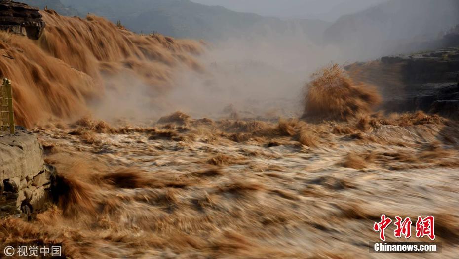 7月17日,山西臨汾,游客在黃河壺口瀑布游覽觀瀑。進(jìn)入7月主汛期,受黃河上游降雨量增多影響,位于山西吉縣和陜西宜川縣交界的黃河壺口瀑布水量暴漲。濁浪滔天的壯美瀑布群景觀,吸引了眾多游客。呂桂明攝 圖片來源:視覺中國
