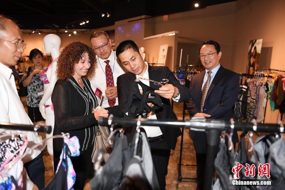 當(dāng)?shù)貢r間7月17日,深圳市內(nèi)衣行業(yè)協(xié)會在中美國際(美東)創(chuàng)業(yè)港——默特爾比奇市Waccoma Center舉行深圳內(nèi)衣產(chǎn)業(yè)推介會暨深圳內(nèi)衣美國展銷中心揭牌儀式。中美國際(美東)創(chuàng)業(yè)港聯(lián)合深圳市內(nèi)衣行業(yè)協(xié)會為深圳內(nèi)衣品牌進駐美東市場搭建綠色通道和產(chǎn)業(yè)孵化平臺,采用“時尚秀+靜態(tài)展”的形式,促進中美內(nèi)衣文化和時尚的交流。圖為默特爾比奇市市長布蘭達(dá)Brenda Bethune女士參觀深圳內(nèi)衣展廳。 中新社記者 陳文 攝