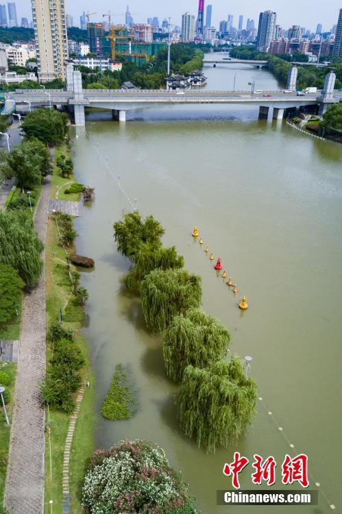 7月10日,航拍長江與南京秦淮河交匯處,樹木淹入水中。當日,江蘇水利廳發(fā)布的水情信息顯示,長江南京段水位已降至警戒線以下。中新社記者泱波 攝