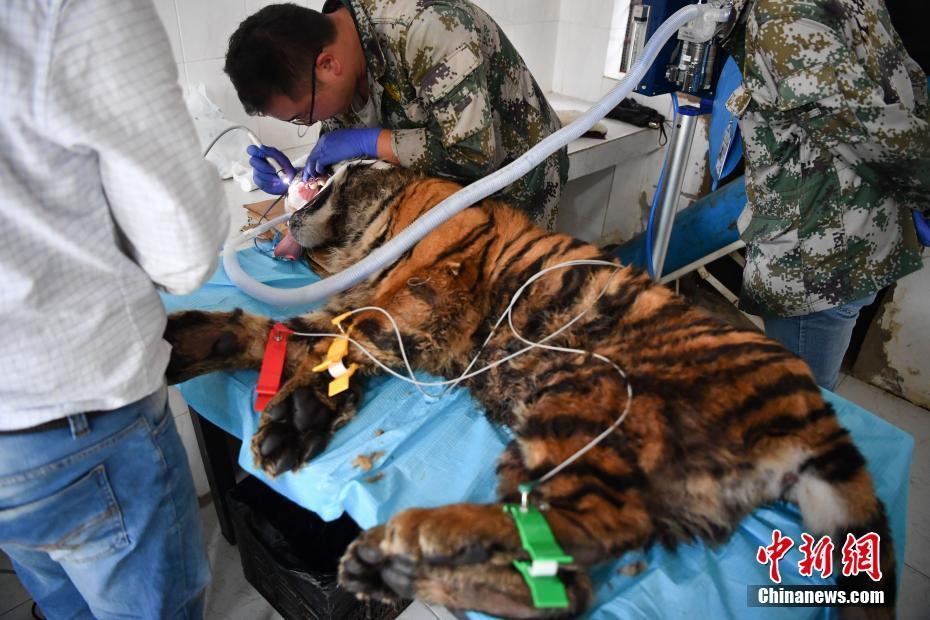 8月9日,位于昆明的云南野生動(dòng)物園獸醫(yī)通過(guò)呼吸麻醉的方式,為園中一只一歲的老虎清潔牙。 中新社記者 劉冉陽(yáng) 攝