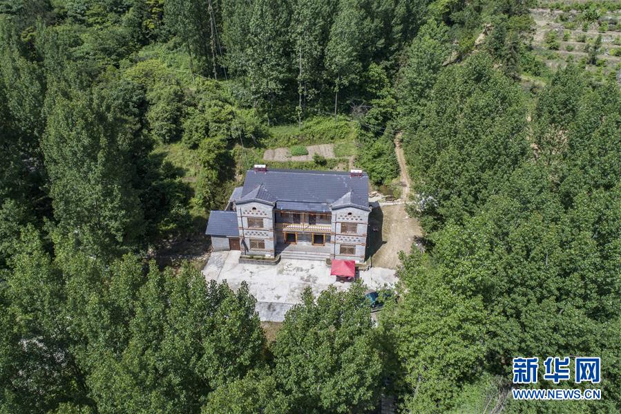 堰河村一棟建在深山中的仿古別墅(5月12日無(wú)人機(jī)拍攝)。