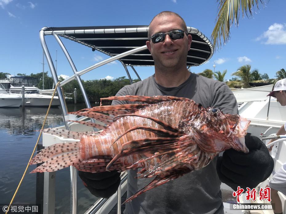 8月21日訊(具體拍攝時(shí)間不詳),近日,來(lái)自長(zhǎng)島的Timothy Blasko打破了記錄,他捕獲了大西洋最重的獅子魚(yú)。37歲的Timothy Blasko是一名技術(shù)精湛的捕魚(yú)者,當(dāng)天,他和朋友們?cè)诜鹆_里達(dá)群島伊斯拉莫拉達(dá)海岸捕魚(yú)時(shí),遇到了這條大魚(yú)。Timothy向朋友要來(lái)了魚(yú)叉,瞄準(zhǔn)大魚(yú)的下方位置叉去,正中目標(biāo)成功捕獲。當(dāng)他們把這條魚(yú)和當(dāng)天捕獲的其它魚(yú)排在一起時(shí),他們猜測(cè)這條魚(yú)可能會(huì)破紀(jì)錄。“它簡(jiǎn)直是獅子魚(yú)中的哥斯拉!” Timothy描述道,“這條巨大的獅子魚(yú)重達(dá)3.1磅,刷新了大西洋迄今最重獅子魚(yú)的國(guó)家紀(jì)錄?!眻D片來(lái)源:視覺(jué)中國(guó)