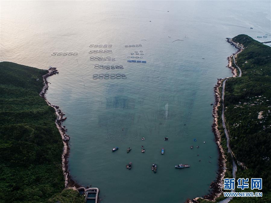 8月18日,南麂島馬祖岙海域的“海上牧場”養(yǎng)殖區(qū)(無人機拍攝)。南麂島位于浙江東南海域,水質(zhì)好,水溫、鹽度都適合大黃魚等養(yǎng)殖魚類的生長繁殖,因此當(dāng)?shù)氐乃a(chǎn)品也一直保持了較高的品質(zhì)和口碑。進入8月,浙江省溫州市平陽縣南麂鎮(zhèn)海域上大片的大黃魚、貽貝等特色海產(chǎn)品養(yǎng)殖區(qū)域迎來豐收季節(jié),養(yǎng)殖戶們駕駛漁船在養(yǎng)殖區(qū)海域進行打撈收獲,在碧海藍天下構(gòu)成了一幅“海上牧場”的美麗豐收景象。近年來,南麂鎮(zhèn)政府引導(dǎo)漁民養(yǎng)殖戶充分發(fā)揮“靠海吃?!钡馁Y源優(yōu)勢,大力發(fā)展海洋養(yǎng)殖經(jīng)濟和海島旅游經(jīng)濟,實現(xiàn)了南麂由“生態(tài)美”向“產(chǎn)業(yè)美”,“產(chǎn)業(yè)美”向“經(jīng)濟美”的轉(zhuǎn)變。同時該鎮(zhèn)堅持以大黃魚、貽貝等為特色產(chǎn)業(yè)支撐,精準(zhǔn)發(fā)展高效海洋養(yǎng)殖業(yè),重點培養(yǎng)一批新型職業(yè)漁民,依靠專業(yè)技術(shù)支持,實現(xiàn)深海仿生養(yǎng)殖,讓好生態(tài)造就好品質(zhì),重點打造南麂養(yǎng)殖品牌,組建營銷網(wǎng)絡(luò),拓展特色海產(chǎn)品市場。新華社記者 徐昱攝