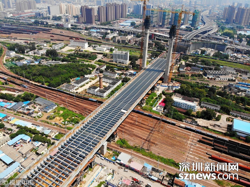 深圳新聞網(wǎng)訊 2018年8月19日,鄭州,跨亞洲最大火車(chē)站編組站的農(nóng)業(yè)路高架鄭北大橋工程開(kāi)始最后一輪頂推,長(zhǎng)度為160米,約占總頂推長(zhǎng)度的1/3,頂推重量達(dá)到9000噸。
