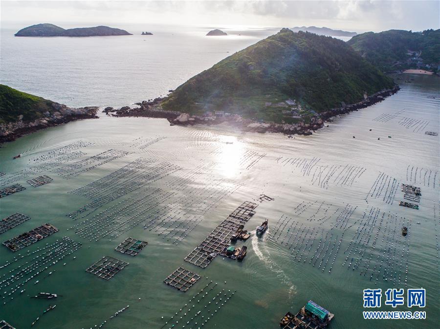 8月19日,空中俯瞰南麂島海域內(nèi)的“海上牧場”養(yǎng)殖區(qū)(無人機拍攝)。南麂島位于浙江東南海域,水質(zhì)好,水溫、鹽度都適合大黃魚等養(yǎng)殖魚類的生長繁殖,因此當(dāng)?shù)氐乃a(chǎn)品也一直保持了較高的品質(zhì)和口碑。進入8月,浙江省溫州市平陽縣南麂鎮(zhèn)海域上大片的大黃魚、貽貝等特色海產(chǎn)品養(yǎng)殖區(qū)域迎來豐收季節(jié),養(yǎng)殖戶們駕駛漁船在養(yǎng)殖區(qū)海域進行打撈收獲,在碧海藍天下構(gòu)成了一幅“海上牧場”的美麗豐收景象。近年來,南麂鎮(zhèn)政府引導(dǎo)漁民養(yǎng)殖戶充分發(fā)揮“靠海吃?!钡馁Y源優(yōu)勢,大力發(fā)展海洋養(yǎng)殖經(jīng)濟和海島旅游經(jīng)濟,實現(xiàn)了南麂由“生態(tài)美”向“產(chǎn)業(yè)美”,“產(chǎn)業(yè)美”向“經(jīng)濟美”的轉(zhuǎn)變。同時該鎮(zhèn)堅持以大黃魚、貽貝等為特色產(chǎn)業(yè)支撐,精準(zhǔn)發(fā)展高效海洋養(yǎng)殖業(yè),重點培養(yǎng)一批新型職業(yè)漁民,依靠專業(yè)技術(shù)支持,實現(xiàn)深海仿生養(yǎng)殖,讓好生態(tài)造就好品質(zhì),重點打造南麂養(yǎng)殖品牌,組建營銷網(wǎng)絡(luò),拓展特色海產(chǎn)品市場。新華社記者 徐昱攝