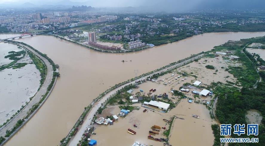 這是9月18日在廣東省陽江市陽春市拍攝的水浸情況(無人機拍攝)。 新華社記者張加揚攝