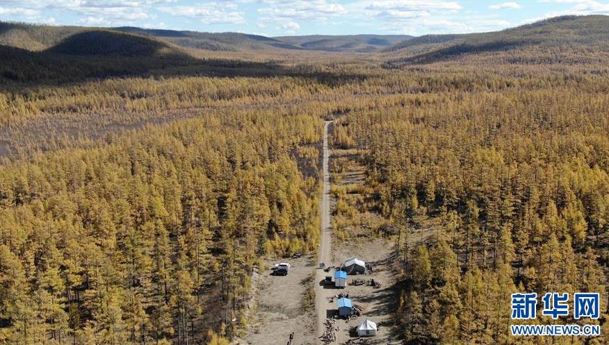 9月18日,在內(nèi)蒙古大興安嶺根河林業(yè)局約安里林場,林場職工在河套取生活用水(無人機拍攝)。新華社記者李任滋攝