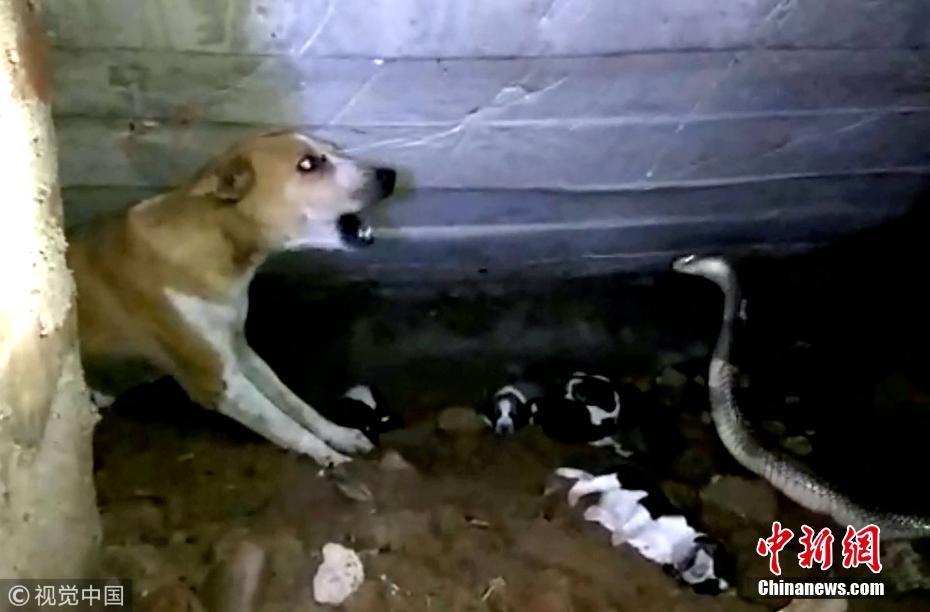 9月20日訊(具體拍攝時(shí)間不詳),印度奧里薩邦,一只寵物狗勇敢地挽救了新生幼犬的生命,它擊退了一條可怕的眼鏡蛇。面對(duì)一條巨大的斑點(diǎn)眼鏡蛇——世界上最毒的蛇之一——這位新媽媽勇敢保護(hù)僅出生兩天的幼崽。但不幸的是,盡管狗狗盡了最大的努力,蛇還是在救援人員救出幼犬之前仍殺死了4只小狗。圖片來源:視覺中國(guó)