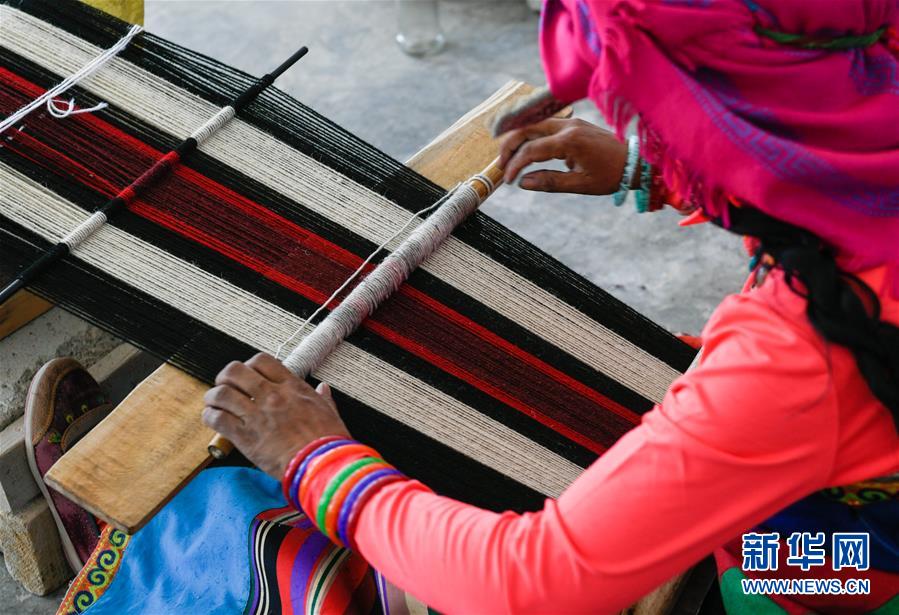 員工卓瑪在鹽湖鄉(xiāng)羌麥村民族手工編織廠工作(9月19日攝)。 2018年,西藏阿里地區(qū)革吉縣鹽湖鄉(xiāng)政府自籌資金成立羌麥村民族手工編織廠,編織廠將當?shù)貍鹘y(tǒng)手工編織技藝與市場需求相結合,生產(chǎn)手提包、圍脖、腰帶、毛毯、藏式頭巾等產(chǎn)品,并參加旅游推介活動,拓寬編織品銷售渠道,助力當?shù)鼐用衩撠殹?新華社記者 劉東君 攝