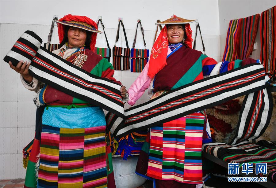 員工益西措姆(左)與嘎措在鹽湖鄉(xiāng)羌麥村民族手工編織廠展示產(chǎn)品(9月19日攝)。 2018年,西藏阿里地區(qū)革吉縣鹽湖鄉(xiāng)政府自籌資金成立羌麥村民族手工編織廠,編織廠將當?shù)貍鹘y(tǒng)手工編織技藝與市場需求相結合,生產(chǎn)手提包、圍脖、腰帶、毛毯、藏式頭巾等產(chǎn)品,并參加旅游推介活動,拓寬編織品銷售渠道,助力當?shù)鼐用衩撠殹?新華社記者 劉東君 攝