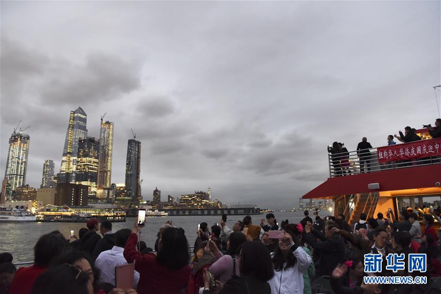 9月23日,在美國紐約,人們參加游船賞月活動。 23日晚,紐約華人社團(tuán)聯(lián)合總會等20多個僑團(tuán)聯(lián)合主辦哈得孫河游船賞月活動。游船從哈得孫河到東河,途經(jīng)炮臺公園、自由女神像、華爾街金融區(qū)、聯(lián)合國大樓等著名景點(diǎn)。 新華社記者韓芳攝