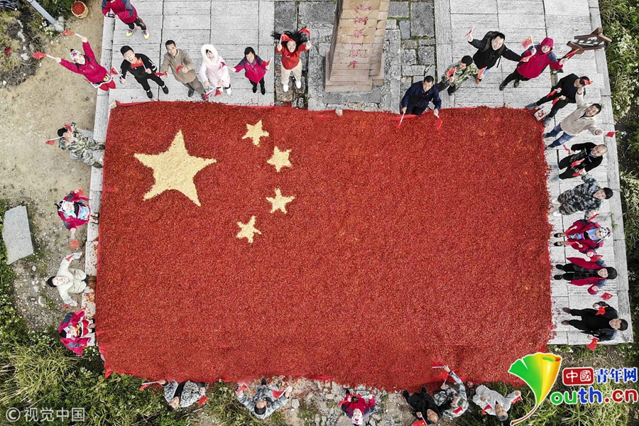 浙江龍泉山喜獲豐收 8噸辣椒拼巨型國(guó)旗