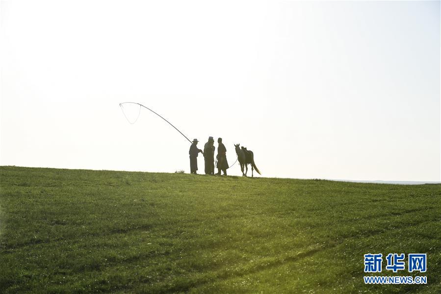 西烏珠穆沁旗草原上的牧民(7月21日攝)。盛夏時節(jié),內(nèi)蒙古錫林郭勒草原一碧千里,遙接天際。藍(lán)天白云之下,牛羊悠閑自在,馬群奔馳其中,風(fēng)光旖旎。 新華社記者 劉磊 攝