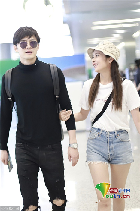 2018年9月26日,上海,穎兒、付辛博夫婦亮相機(jī)場(chǎng)。穎兒身穿白T恤和牛仔短褲露出纖細(xì)美腿十分養(yǎng)眼,一路挽著老公的手十分恩愛(ài)甜蜜,日前,穎兒還在節(jié)目上痛哭述說(shuō)自己與付辛博新婚相處的苦楚。