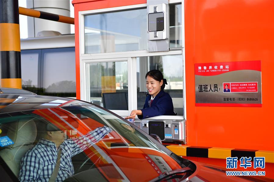 9月28日,車輛通過河南省南樂縣的南(樂)林(州)高速豫魯界收費(fèi)站。新華社記者 馮大鵬 攝