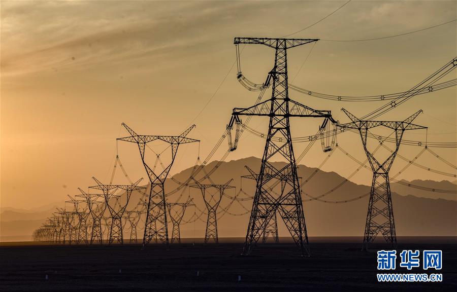 位于新疆鄯善縣境內(nèi)的一處750千伏輸電工程(9月21日攝)。新華社記者趙戈 攝