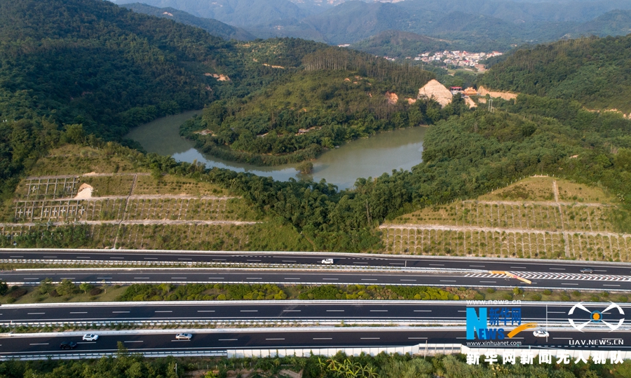 實施改擴建工程之后,路面拓寬了(無人機拍攝)。新華網 肖和勇 攝