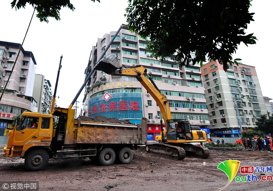 中國青年網(wǎng)北京10月9日電 2018年10月8日消息,四川達州。10月8日從四川省達州市達川區(qū)委宣傳部獲悉,7日14時30分左右,達川區(qū)東環(huán)南路103號人行道路面發(fā)生塌陷險情,經(jīng)調(diào)取視頻監(jiān)控和走訪周邊群眾,救援人員初步判斷疑似有4人掉入坑中。圖片作者:視覺中國