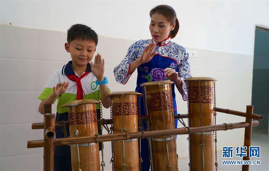 10月8日,崇義縣竹樂樂團的演員在教學(xué)生演奏竹鼓。 近年來,江西省崇義縣思源實驗學(xué)校定期開設(shè)竹樂課,邀請崇義縣竹樂樂團的演員教授學(xué)生演奏竹排琴、竹板琴等竹樂樂器,激發(fā)學(xué)生了解傳統(tǒng)文化的熱情。 新華社記者胡晨歡攝