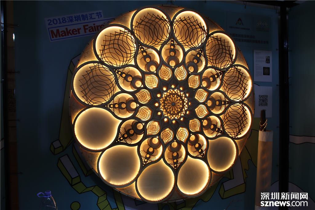 在主會(huì)場(chǎng)一樓展廳內(nèi),一款由激光切割制作的燈具十分精美