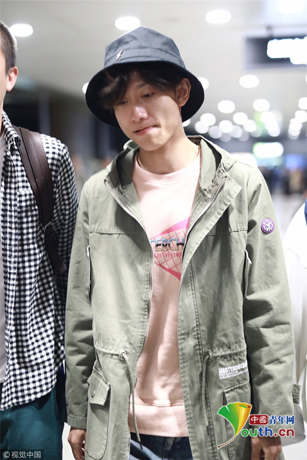 2018年10月14日,上海,張一山抵達上海機場。張一山戴漁夫帽眼袋嚴重瞬間老十歲, 用手擋臉似不愿上鏡。