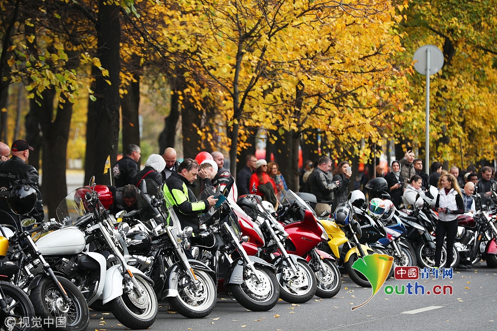 當(dāng)?shù)貢r(shí)間2018年10月13日,俄羅斯莫斯科,當(dāng)?shù)嘏e行摩托車游行。