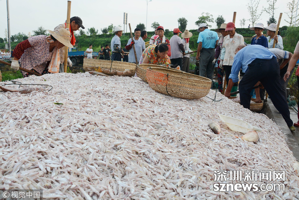 2018年8月16日,安徽巢湖漁民正在裝運(yùn)捕撈上來(lái)的毛魚(yú)和銀魚(yú)。