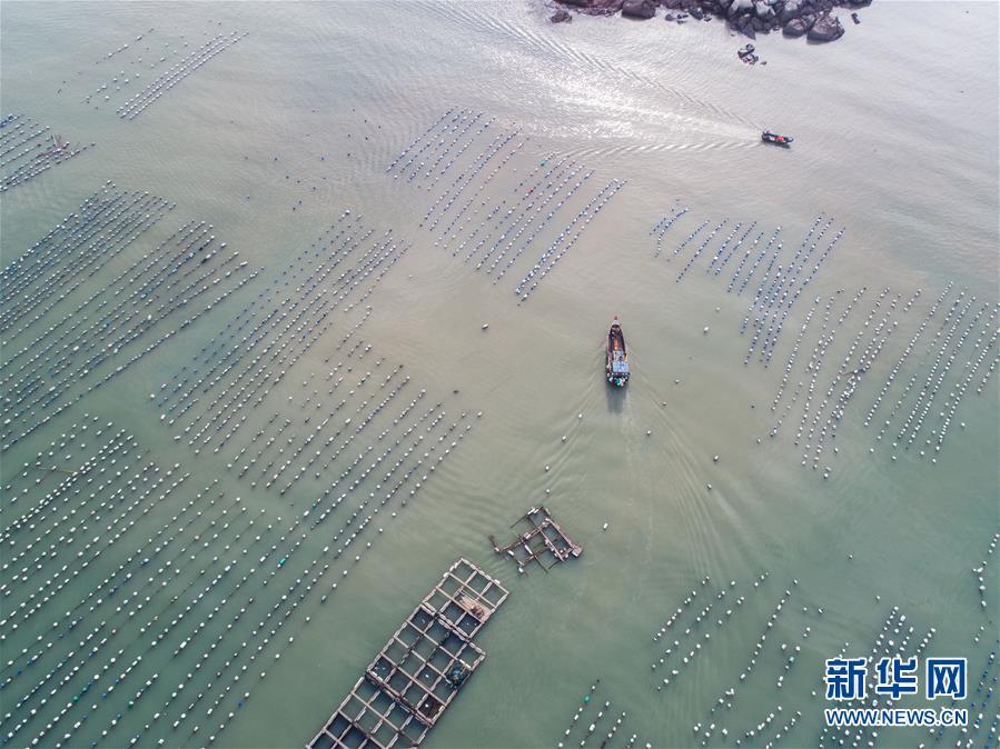 8月19日,空中俯瞰南麂島海域內(nèi)的“海上牧場”養(yǎng)殖區(qū)(無人機拍攝)。進入8月,浙江省溫州市平陽縣南麂鎮(zhèn)海域上大片的大黃魚、貽貝等特色海產(chǎn)品養(yǎng)殖區(qū)域迎來豐收季節(jié),養(yǎng)殖戶們駕駛漁船在養(yǎng)殖區(qū)海域進行打撈收獲,在碧海藍天下構(gòu)成了一幅“海上牧場”的美麗豐收景象。近年來,南麂鎮(zhèn)政府引導(dǎo)漁民養(yǎng)殖戶充分發(fā)揮“靠海吃?!钡馁Y源優(yōu)勢,大力發(fā)展海洋養(yǎng)殖經(jīng)濟和海島旅游經(jīng)濟,實現(xiàn)了南麂由“生態(tài)美”向“產(chǎn)業(yè)美”,“產(chǎn)業(yè)美”向“經(jīng)濟美”的轉(zhuǎn)變。同時該鎮(zhèn)堅持以大黃魚、貽貝等為特色產(chǎn)業(yè)支撐,精準發(fā)展高效海洋養(yǎng)殖業(yè),重點培養(yǎng)一批新型職業(yè)漁民,依靠專業(yè)技術(shù)支持,實現(xiàn)深海仿生養(yǎng)殖,讓好生態(tài)造就好品質(zhì),重點打造南麂養(yǎng)殖品牌,組建營銷網(wǎng)絡(luò),拓展特色海產(chǎn)品市場。新華社記者 徐昱攝
