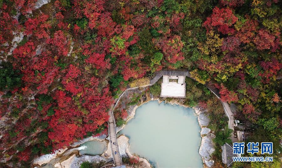 這是西狹頌景區(qū)秋景(10月16日無人機(jī)拍攝)。  新華社記者 陳斌 攝