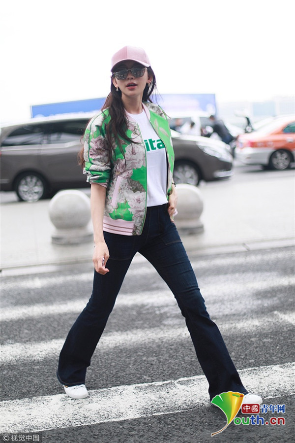 2018年10月16日,上海,林志玲亮相機(jī)場(chǎng),她身穿綠色印花外套搭配粉色鴨舌帽十分清新靚麗,乖乖坐小車抿嘴甜笑比V嘟嘴頻賣萌。
