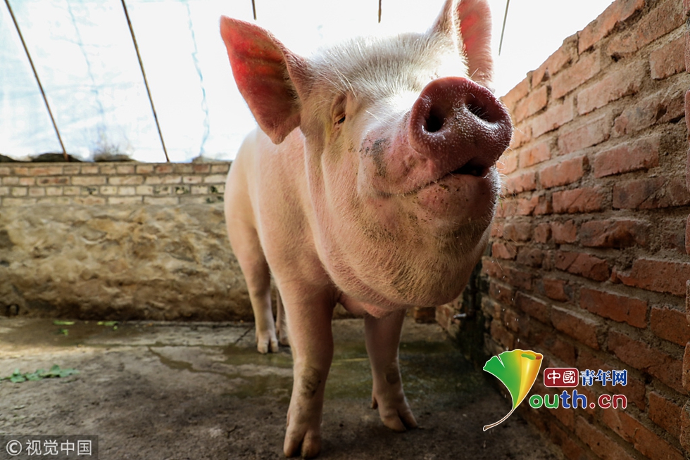 村里一位83歲的老人在圍觀時(shí)說(shuō),活了一輩子第一次見(jiàn)到這么大的豬,豬是好豬,但是賣不出去愁人啊。900斤大豬是個(gè)什么概念?體長(zhǎng)2米25、腰圍1米75,站立高度1米10。此時(shí)此刻,900斤大豬完全不知主人的苦,也完全不知道外面的世界發(fā)生了什么。圖為養(yǎng)豬戶張先生險(xiǎn)些從900斤大豬背上摔下來(lái)。圖片作者:棋簿紫/視覺(jué)中國(guó)