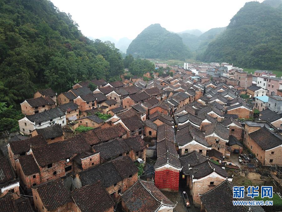 廣西富川瑤族自治縣朝東鎮(zhèn)岔山村連片古民居群(10月19日無人機拍攝)?!⌒氯A社記者 周華 攝