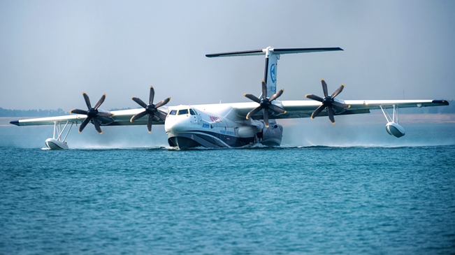 “AG600大型水陸兩棲飛機這次驗證了水上起飛、空中飛行、水上降落能力,圓滿完成了水上首飛重大里程碑科目,在研制進程中又邁出了堅實的一步?!敝袊娇展I(yè)集團有限公司董事長譚瑞松說。