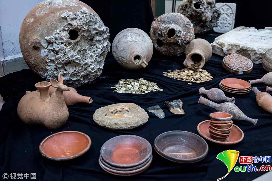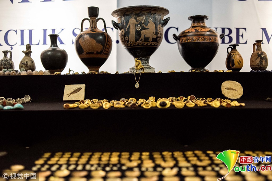中國(guó)青年網(wǎng)北京10月21日電 當(dāng)?shù)貢r(shí)間2018年10月19日,土耳其伊斯坦布爾,繳獲的走私文物在伊斯坦布爾展出。以伊斯坦布爾為主的安全委員會(huì)展開打擊文物走私行動(dòng),取得歷史性收獲,在全國(guó)12個(gè)省份繳獲了攻擊1.4萬(wàn)件文物,其中包括金幣、羅馬時(shí)期的墓碑、呂底亞銀幣、拜占庭硬幣以及羅馬時(shí)期的劍等。圖片來(lái)源:視覺中國(guó)