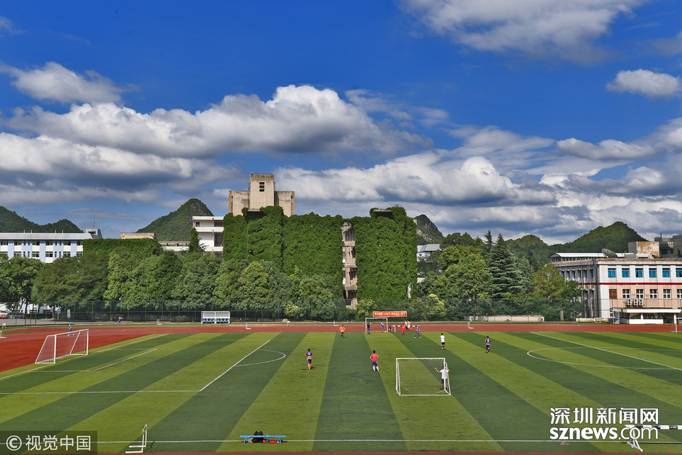2018年6月20日,貴陽(yáng),貴州大學(xué)現(xiàn)12層樓近50米高綠色“巨瀑”。據(jù)悉,這是該校的老師們?cè)?6年前栽種的300多棵爬山虎,如今爬滿12層高的圖書館大樓,猶如“綠色城堡”。