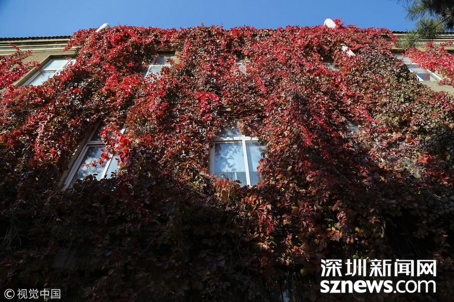 最美校園 !大學(xué)內(nèi)建筑被爬山虎包圍 滿墻火紅美如畫