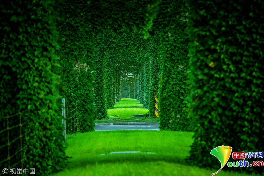 2017年7月9日,成都,被綠色植物包裹的二環(huán)路高架橋。圖片作者/視覺(jué)中國(guó)