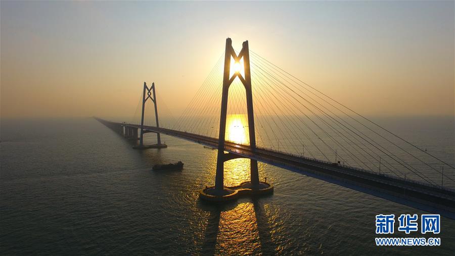 清晨的陽光穿過港珠澳大橋“中國結(jié)”橋塔(2017年12月27日無人機拍攝)。 金秋十月,伶仃洋上海天一色、潮聲陣陣,依傍著這片中國南海水域的城市群迎來深具意義的一天。 10月23日上午,港珠澳大橋開通儀式在廣東珠海舉行,中共中央總書記、國家主席、中央軍委主席習(xí)近平出席儀式,宣布大橋正式開通。 碧波之上,一橋飛架香港、澳門、珠海三地,以氣貫長虹的“中國跨度”,飛越滄海百年的歷史風(fēng)云,展現(xiàn)當代中國的雄健風(fēng)采。 新華社記者梁旭攝