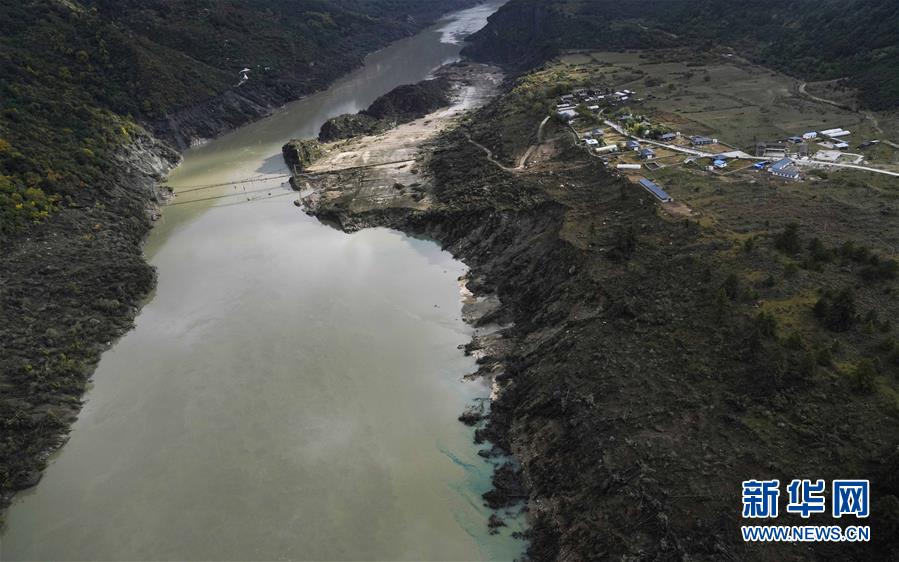 雅魯藏布江上的堰塞湖和堰塞體(10月18日攝)。 新華社記者 覺果攝