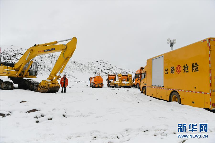 工作人員駕駛大型機(jī)械在昌都市江達(dá)縣的高山牧場上搶通道路(10月14日攝)。新華社記者 劉東君 攝