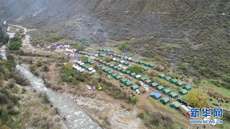 10月19日拍攝的在米林縣派鎮(zhèn)尼定村搭建的安置點(diǎn)。 記者從西藏自治區(qū)林芝加拉村雅魯藏布江堰塞湖災(zāi)情應(yīng)急搶險工作第二場新聞發(fā)布會上獲悉,19日13時30分,雅魯藏布江米林縣堰塞體上游水位超過堰塞體,開始自然過流,上游水位正在緩慢下降。目前,各項(xiàng)搶險救援工作正在有序開展。 新華社記者 覺果 攝