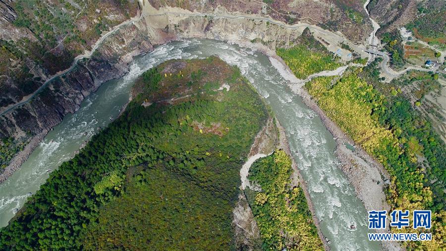 這是10月21日在西藏米林縣派鎮(zhèn)達(dá)林村拍攝的雅魯藏布江(無人機(jī)拍攝)。