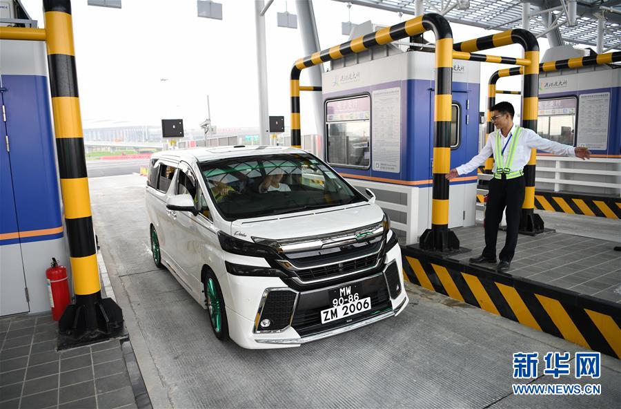 10月24日,首輛從珠海開往香港的私家車輛通過港珠澳大橋收費(fèi)站。當(dāng)日,港珠澳大橋正式通車。 新華社記者梁旭攝