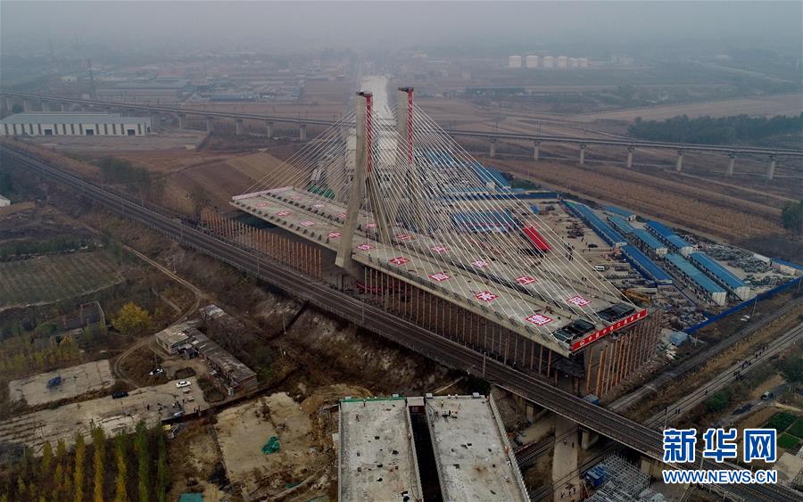 這是10月24日拍攝的鄭萬高鐵跨徐蘭高鐵轉(zhuǎn)體施工現(xiàn)場。