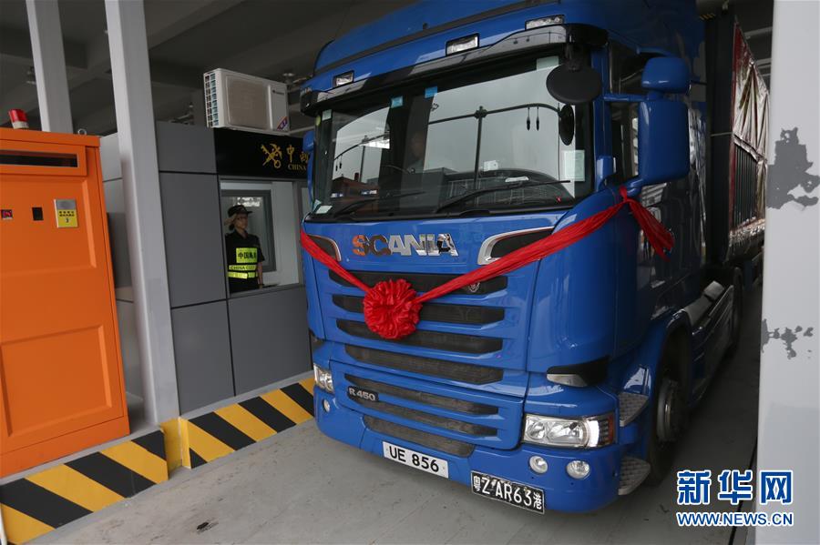 10月24日,港珠澳大橋珠海公路口岸通車首票出口貨物抵達(dá)一站式貨車出境驗(yàn)放通道。當(dāng)日9時,港珠澳大橋正式通車。 新華社記者張加揚(yáng)攝
