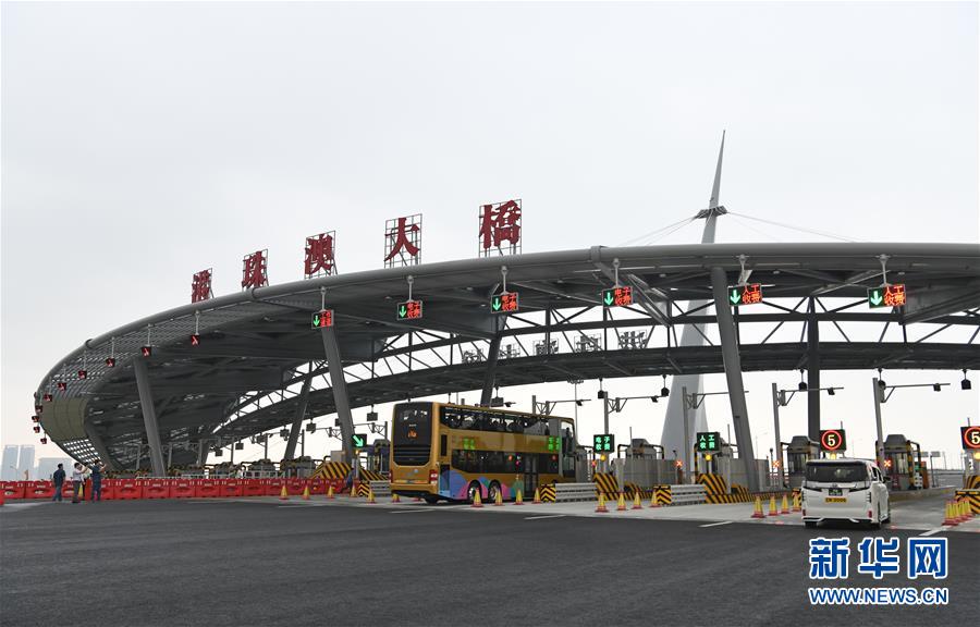 10月24日,從珠海開往香港的首批車輛駛上港珠澳大橋。當(dāng)日,港珠澳大橋正式通車。 新華社記者梁旭攝
