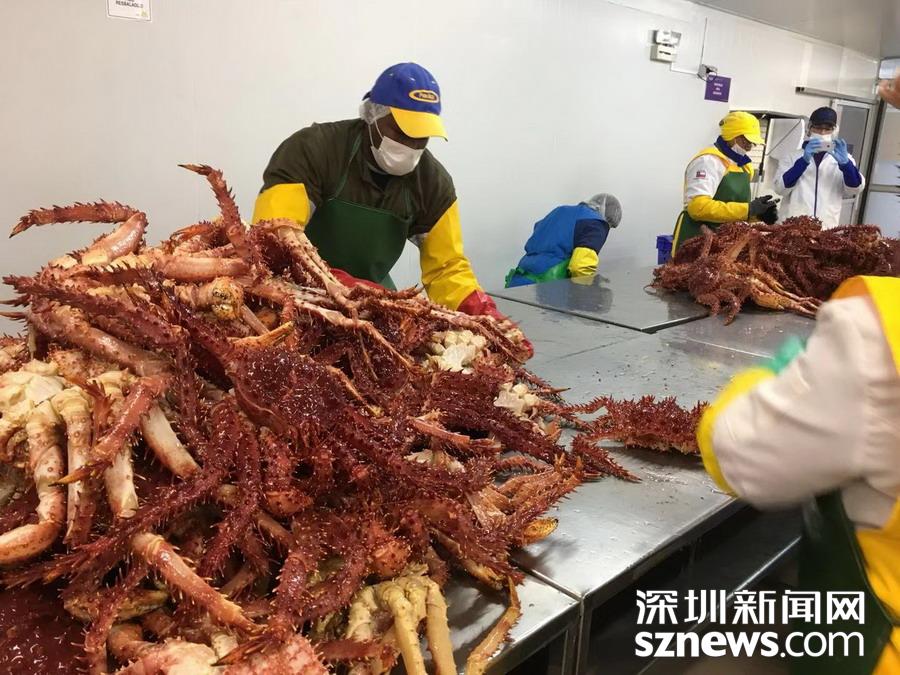 智力蜘蛛蟹加工基地, 產(chǎn)于南極洲海域。 李仁奇 攝